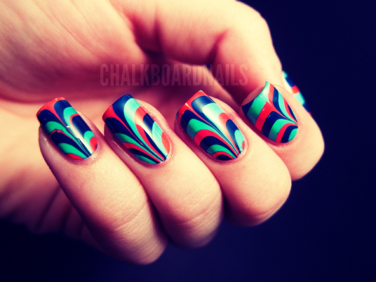 Multichrome Galaxy Water Marble Water Marbling nail art with Ninja